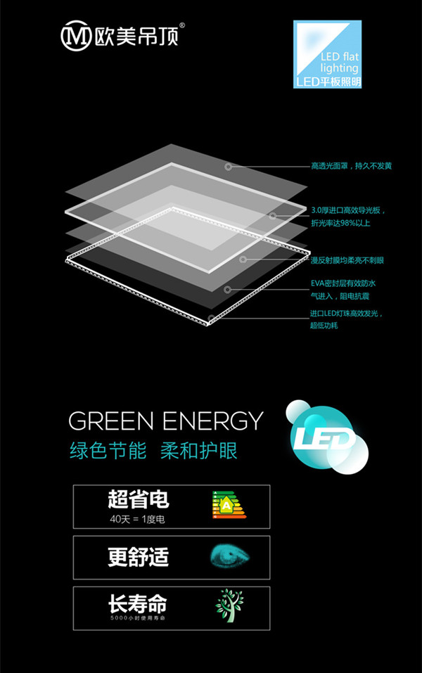 歐美是做光源出身,我們深知一款好的LED平板照明應(yīng)該具備那些要素: